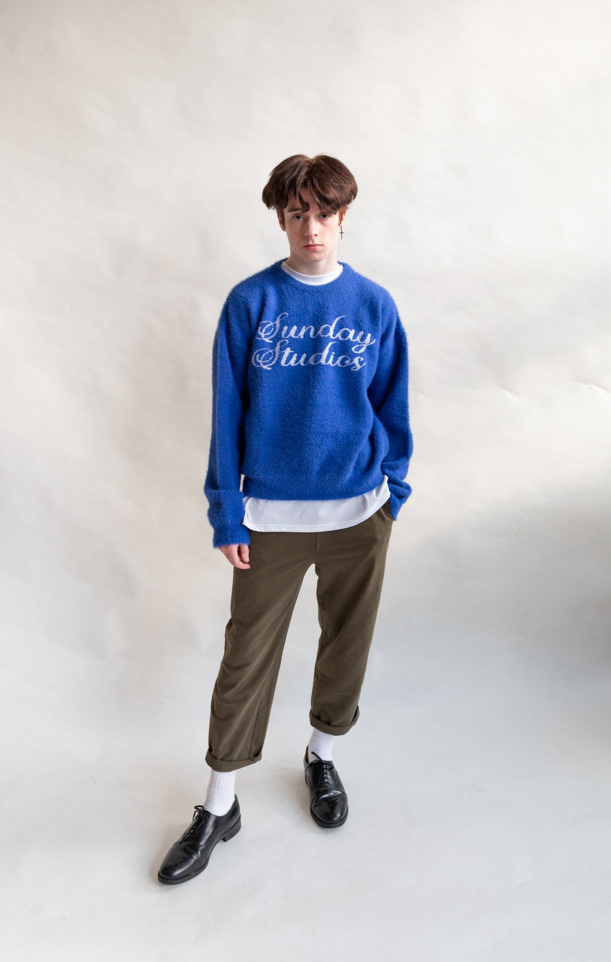 Introducing our latest development in knitwear in the form of this loosely knitted sweater. Designed with the purpose of being the perfect layering piece we have knit this sweater using mohair due to its lightweight thermoregulating ability. We have branded Sunday Studios across the chest.